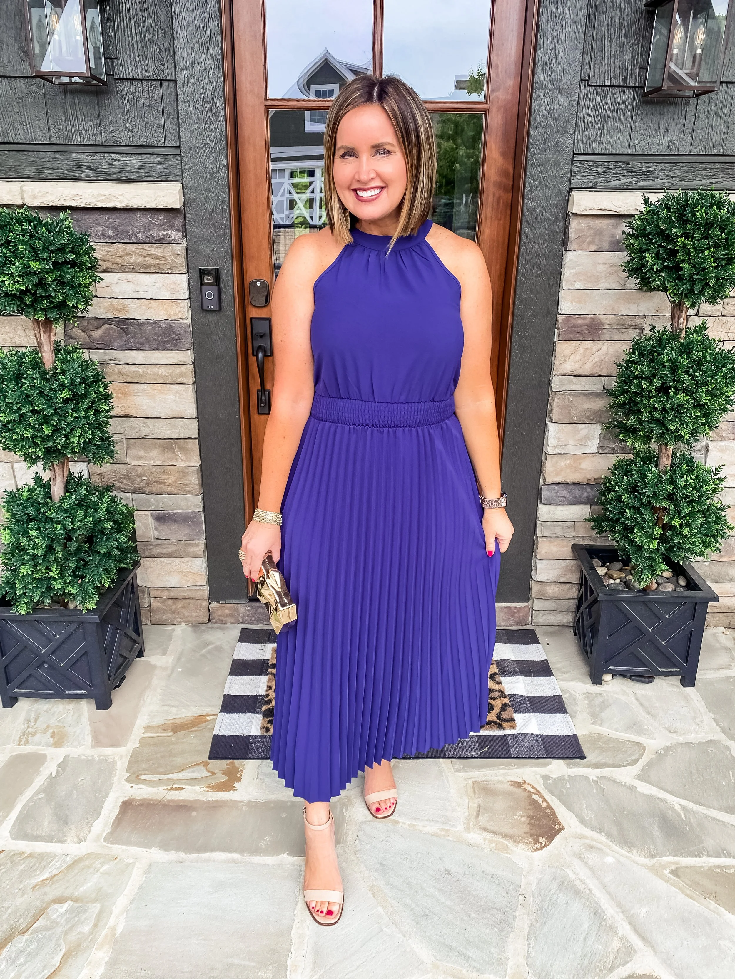 HALTER NECK DRESS (true to size, medium) // GOLD CLUTCH PURSE