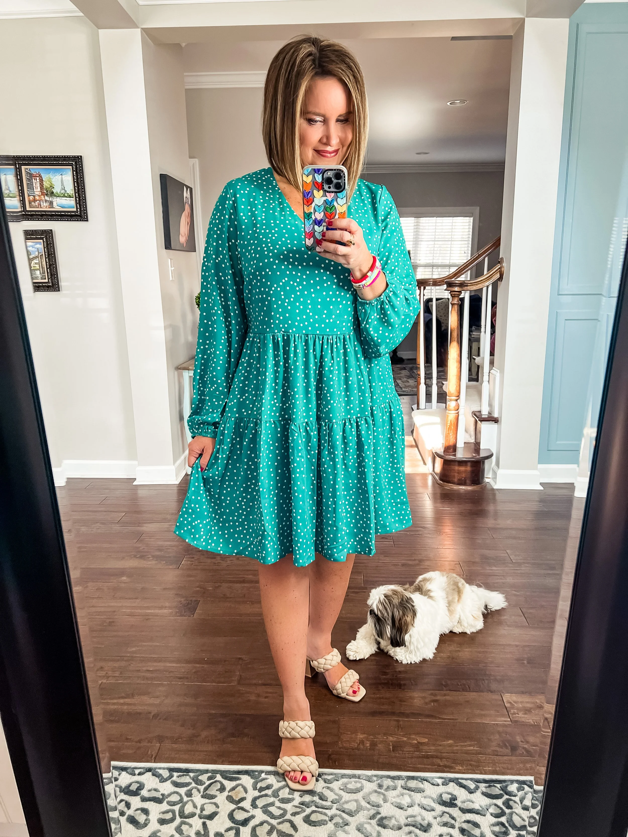 LONG SLEEVE DRESS (runs slightly big, size down if in between. In my regular medium) // BRAIDED SANDALS (true to size)