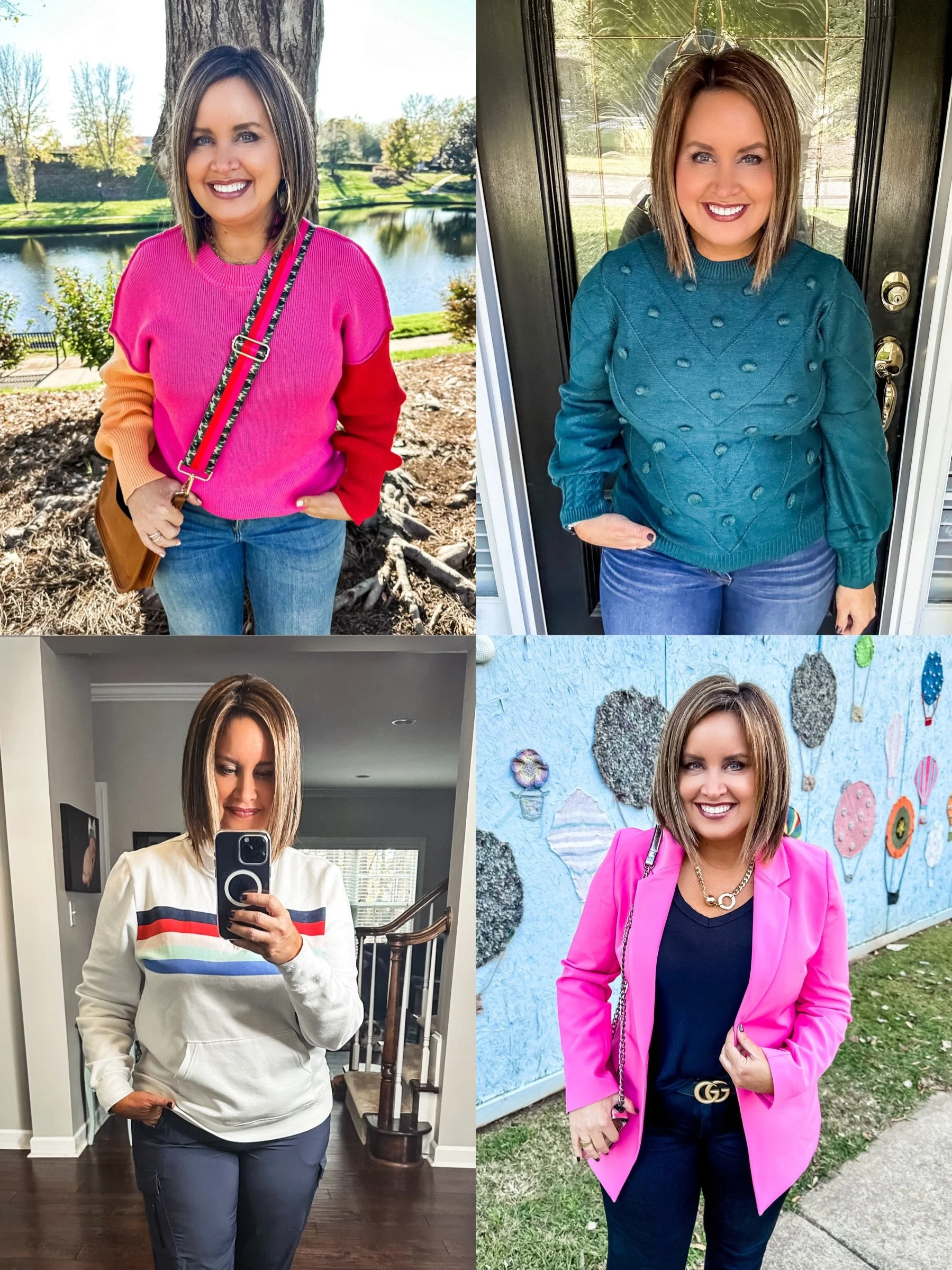 PINK BLAZER - This blazer has been a top seller each time I have shared it. This pink is absolutely beautiful., but if pink isn’t for you, it comes in about 10 other colors. The blazer is really nice quality and I love the longer length. The blazer runs true to size overall, but it runs slightly small in the shoulders. So, if you are broad shouldered, you may want to size up.