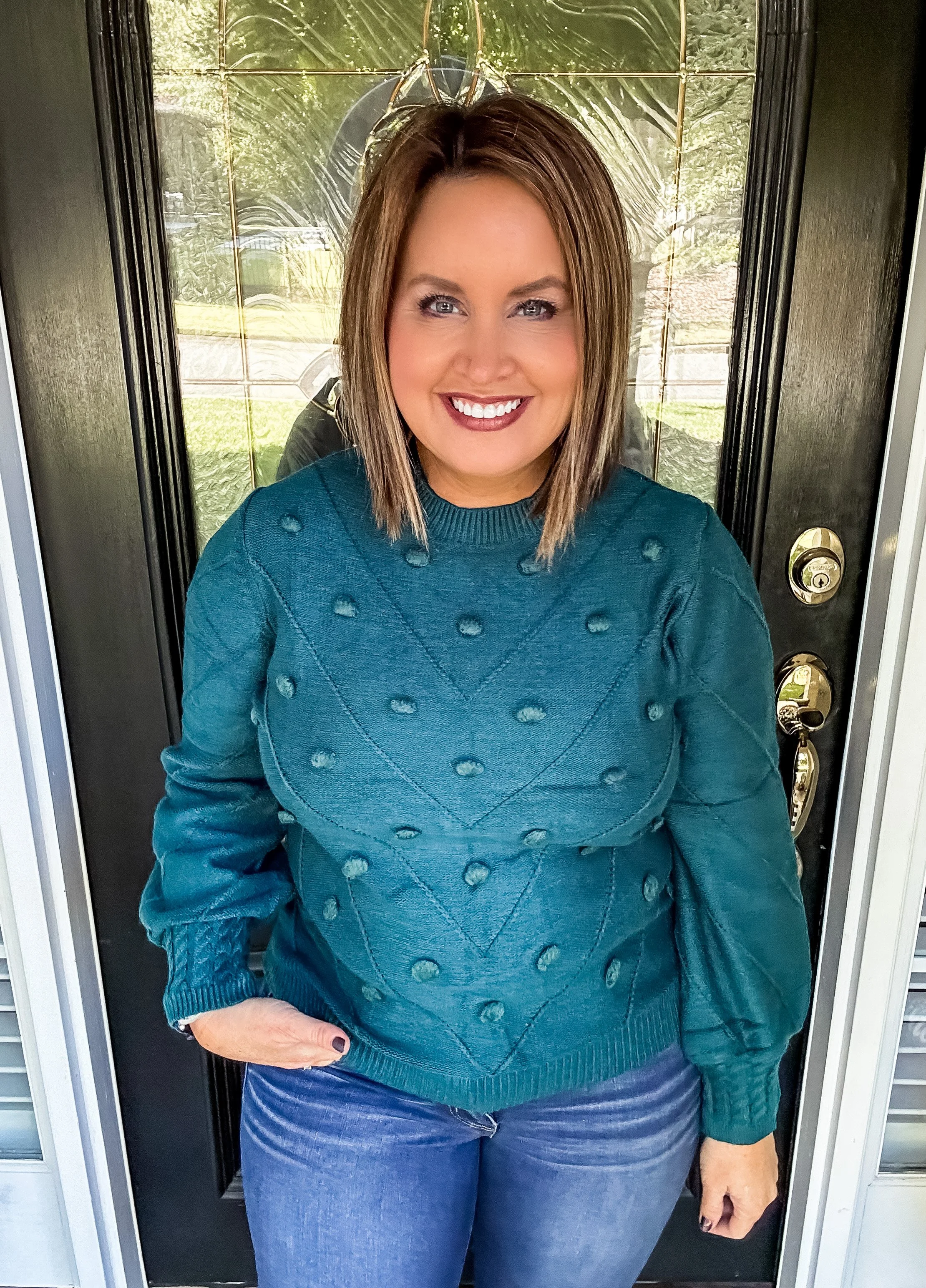 PATTERNED PUFF SLEEVE SWEATER - The details on this sweater are so pretty! I love the design, the color and the puff sleeves. The sweater comes in several colors and runs true to size.