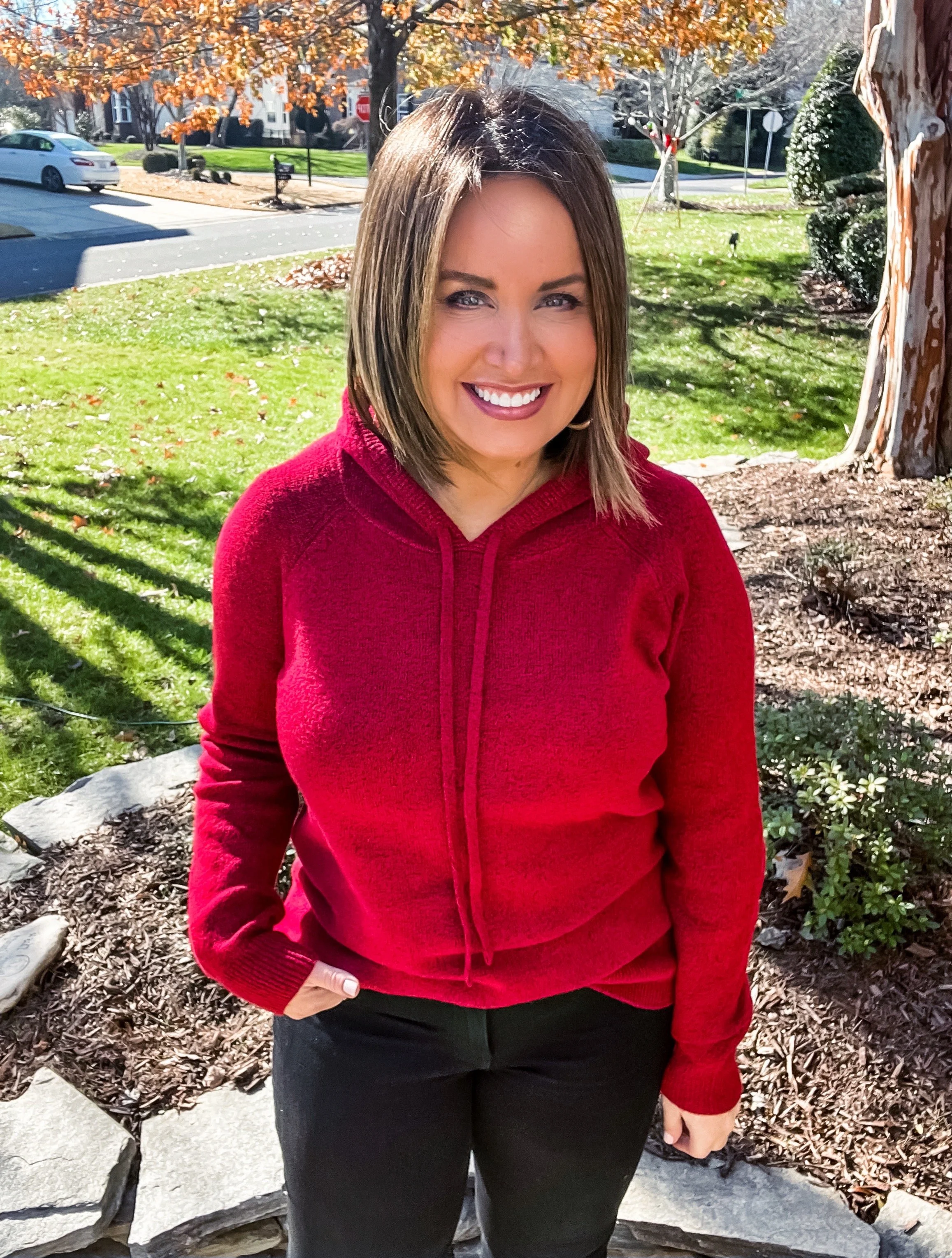 HOODED SWEATER - This is a great basic sweater that is incredibly soft! You could dress it down with joggers or dress it up by adding a necklace and pairing it with some nice jeans. The sweater runs true to size but I sized up to a large for an oversized fit.