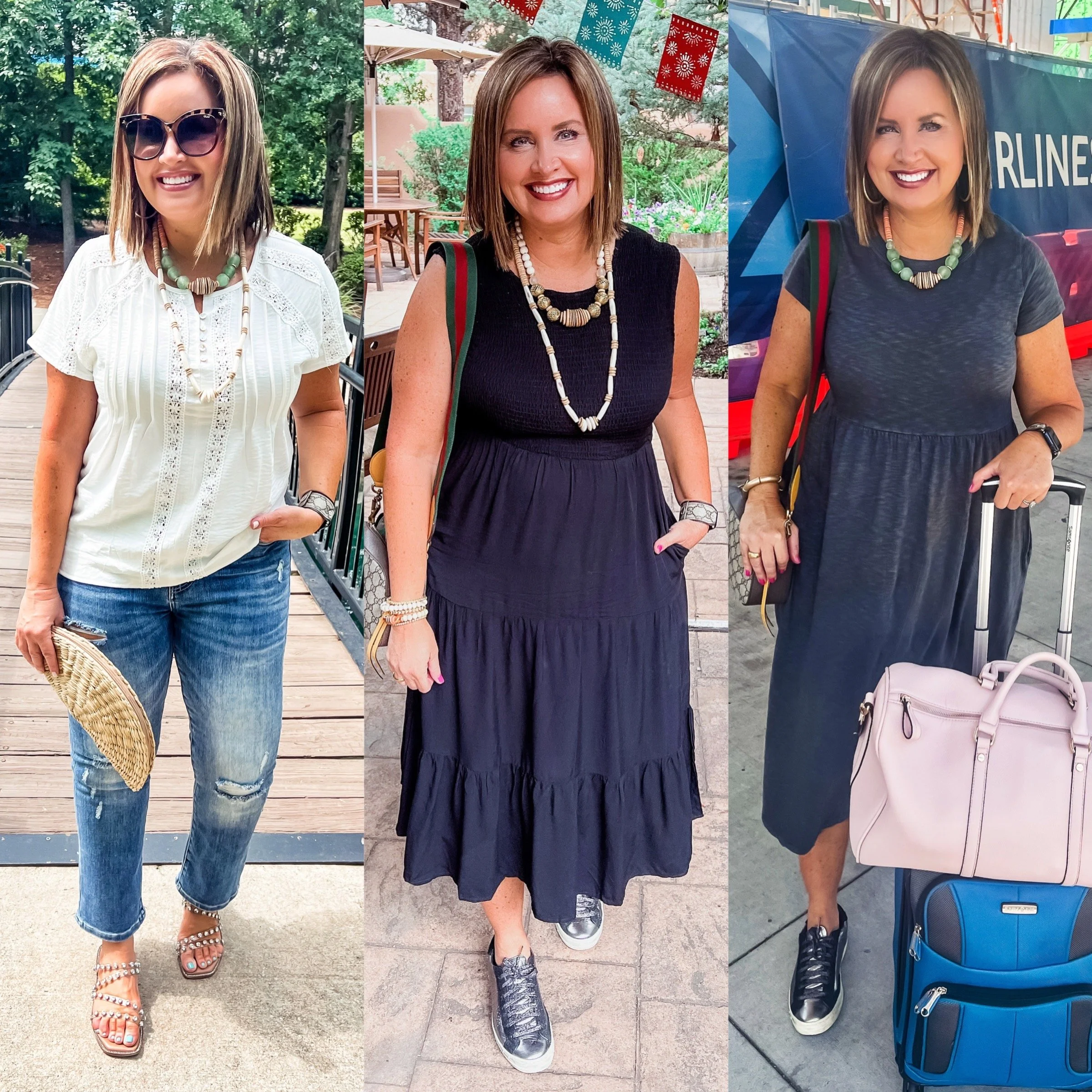 Also pictured: JEANS (Size down if in between. Use code LAURA15 for 15% off), SANDALS, SUNGLASSES, SHORT NECKLACE & LONG NECKLACE