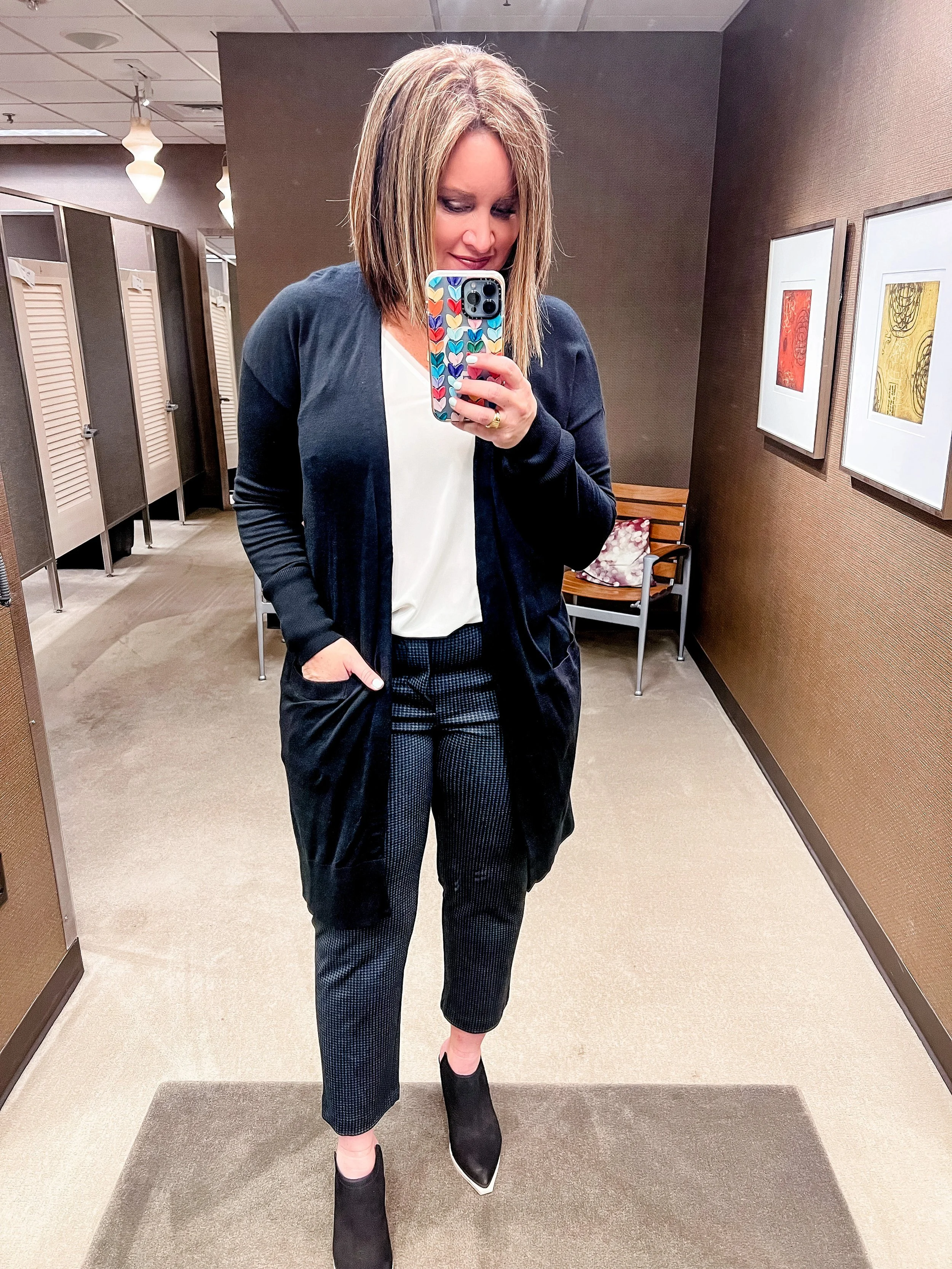 7. LONG CARDIGAN - I love the length of these cardigans and have them in a few colors. Sweater runs true to size; wearing a medium.