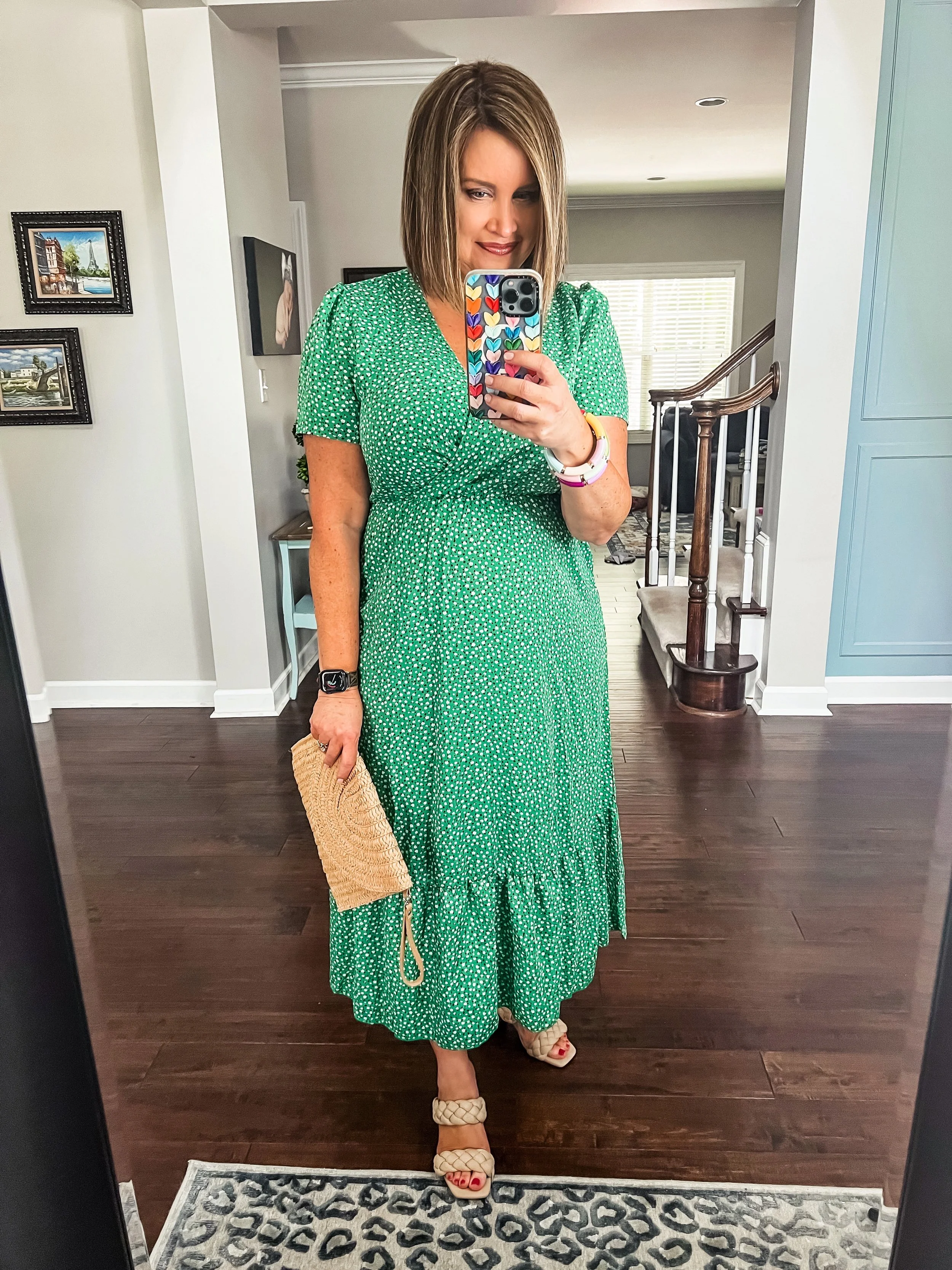 POLKA DOT MIDI DRESS - This dress comes in several colors and patterns and I love the puff sleeves. It runs true to size and I am in a medium.