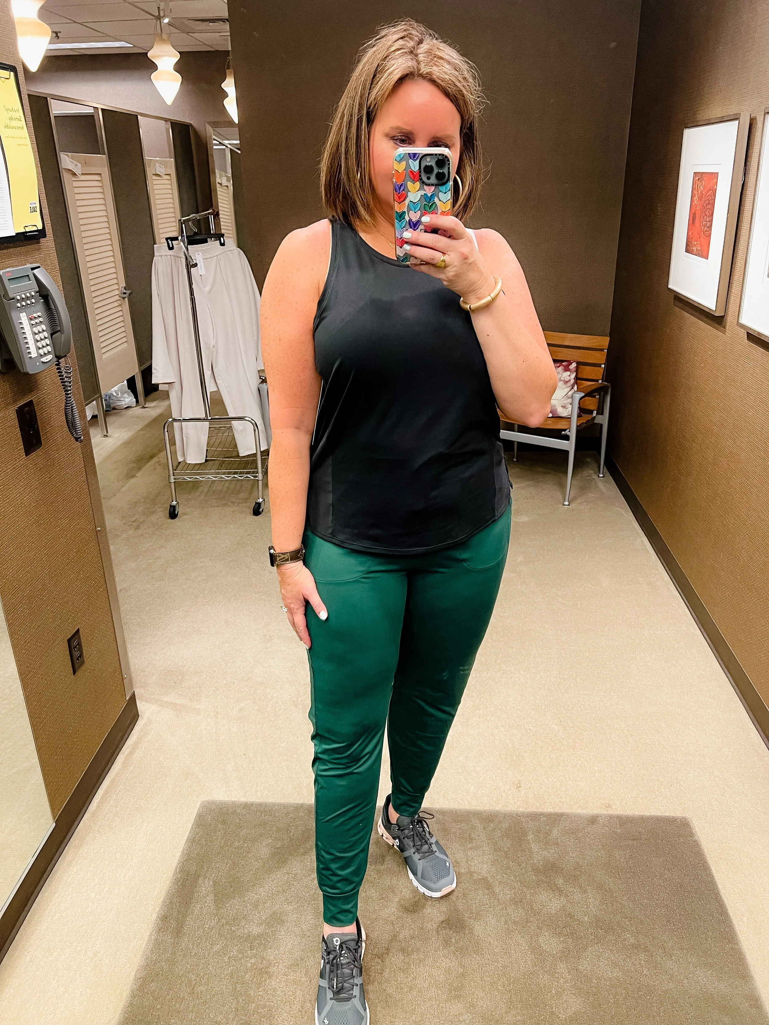 BLACK TANK - This racer back tank is light weight and great for working out or lounging. I recommend sizing up if in between sizes. It is affordably priced at $24 on sale and comes in a few other colors.